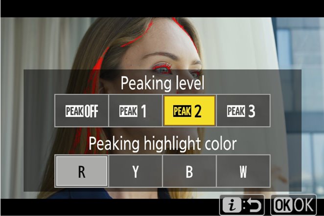 Focus peaking má několik citlivostí a možností barevného zvýraznění vysoce kontrastních míst snímku.