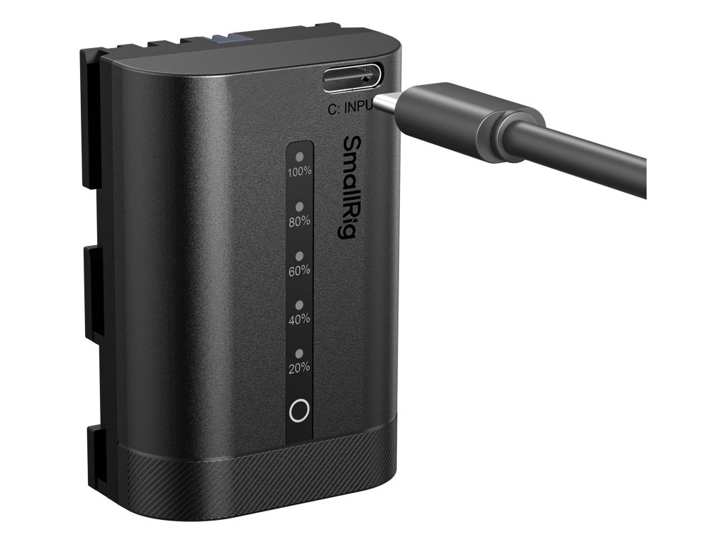 Bátéria je vybavená 5 LED indikátormi na sledovanie stavu nabitia v reálnom čase. Vďaka integrovanému portu USB-C podporuje nabíjanie pomocou powerbank, sieťových adaptérov, nabíjačiek do auta alebo špecializovaných nabíjačiek pre fotoaparáty, čím zaručuje pohodlné nabíjanie kedykoľvek a kdekoľvek.