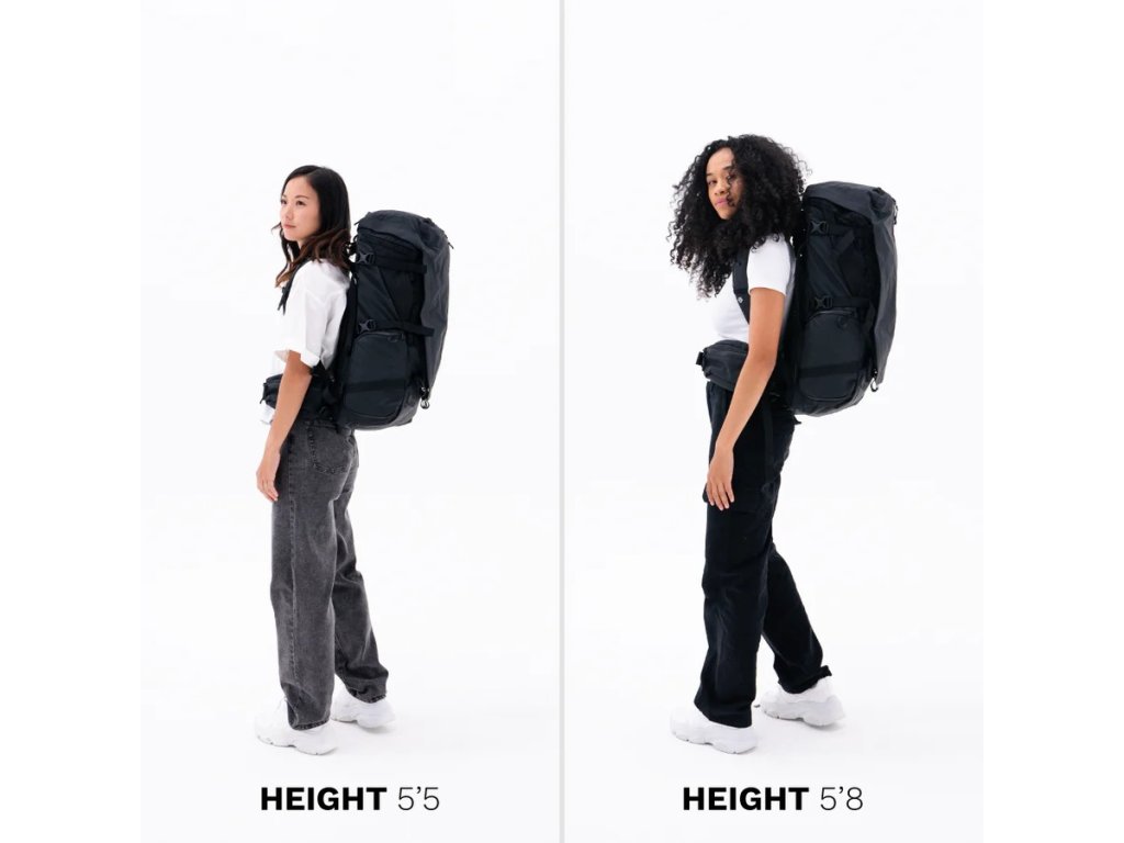 Vnútorný rám, tvarované ramenné popruhy a podporný bedrový pás vo veľkostnom rozsahu M/L tvoria nastaviteľný a stabilný nosný systém. Viacero prístupov do hlavnej priehradky – vrchný, predný, zadný a bočné dvierka na kameru – umožňujú rýchly prístup k obsahu bez potreby úplného rozbalenia.