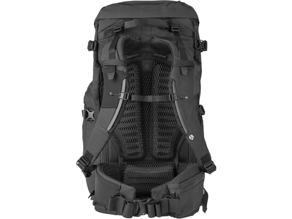 Vnútorný rám, tvarované ramenné popruhy a podporný bedrový pás v veľkostnom rozsahu S/M zabezpečujú ergonomické prispôsobenie rôznym dĺžkam trupu. Viacero prístupových bodov do hlavnej priehradky – vrátane horného, predného, zadného a bočných dvierok na kameru – zaručuje rýchly prístup k výbave.