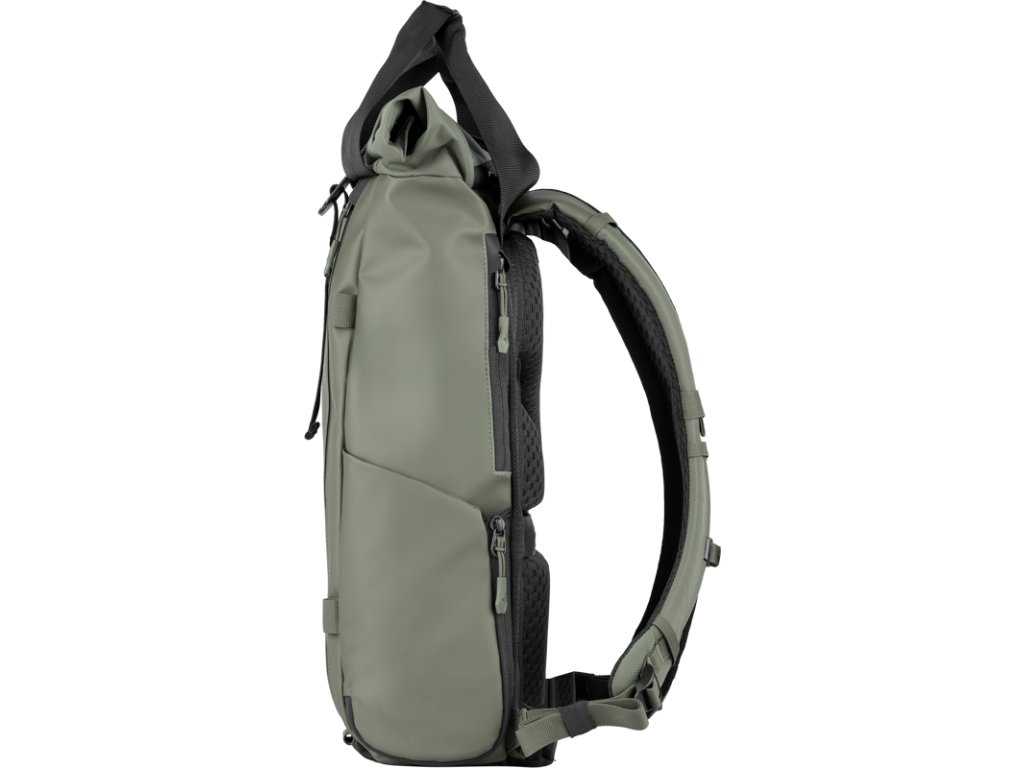 Batoh ponúka rýchly vonkajší prístup k notebooku a puzdru na tablet, podstavec so zipsom a praktickú garáž na kľúče. Rolovací vrch sa dá rozšíriť a zároveň ponúka prístup na zips pre rýchle otvorenie. Ergonomické ramenné popruhy, magnetické rukoväte na tašku, dve vrecká na fľašu a priechod na batožinu zabezpečujú pohodlie a všestrannosť. Batoh je kompatibilný s bedrovým pásom.