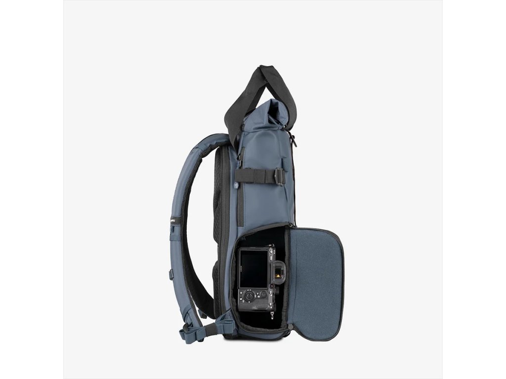 Konštrukcia z tarpaulinu odolného voči poveternostným vplyvom a balistického nylonu chráni obsah v rôznych podmienkach. Tvarovaný chrbtový panel a polstrované ramenné popruhy zaručujú pohodlie. Bočný prístup do priehradky na fotoaparát umožňuje rýchlu výmenu techniky, čalúnené puzdro na notebook s „false bottom“ chráni tenký notebook alebo tablet, rozšíriteľný rolovací vrch pridáva objem podľa potreby a skryté vrecko na pas uchová cennosti v bezpečí. Vďaka vonkajším úchytom môžete prenášať statív alebo fľašu s vodou.