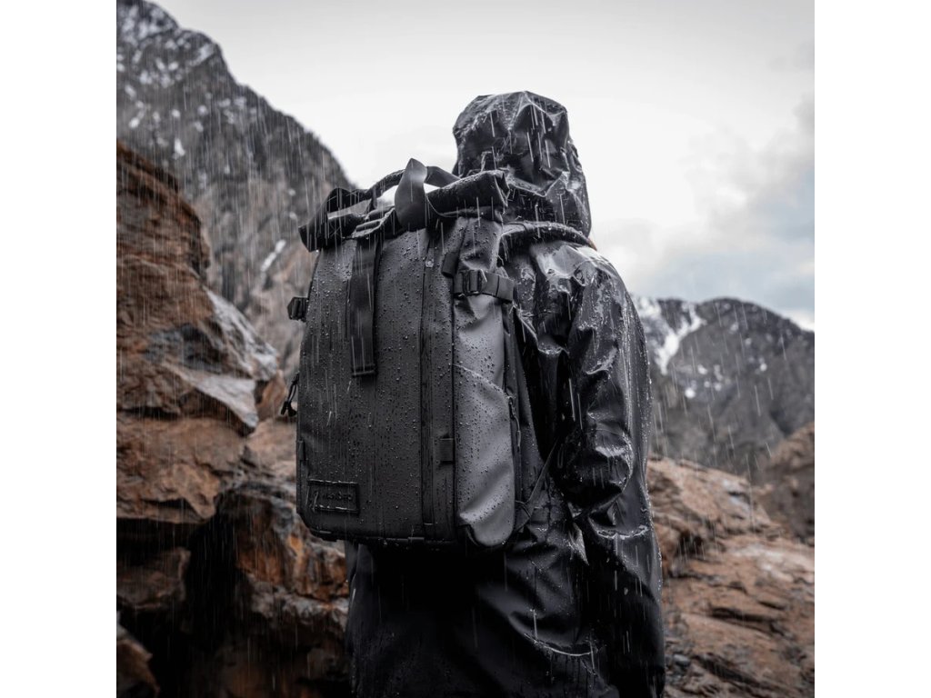 Odolná konštrukcia z tarpaulinu a balistického nylonu chráni výbavu pred počasím aj opotrebením. Tvarovaný chrbtový panel a polstrované ramenné popruhy zaisťujú pohodlie. Bočný prístup do priehradky na fotoaparát skracuje čas medzi vytiahnutím techniky a fotením, čalúnené puzdro na notebook s falošným dnom chráni citlivú techniku, rozšíriteľný rolovací vrch ponúka extra priestor a skryté vrecko na pas uchováva cennosti. Vonkajšie úchyty umožňujú prenášať statív alebo fľašu s vodou.