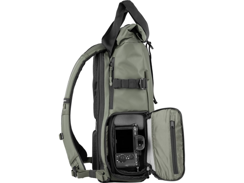 Vďaka foto kocke s nastaviteľnými prepážkami si vnútro jednoducho prispôsobíte svojej zostave – či už ide o kompaktný mirrorless systém alebo menšiu DSLR s objektívmi. Samostatný priestor na notebook a tablet uľahčuje prácu na cestách.
