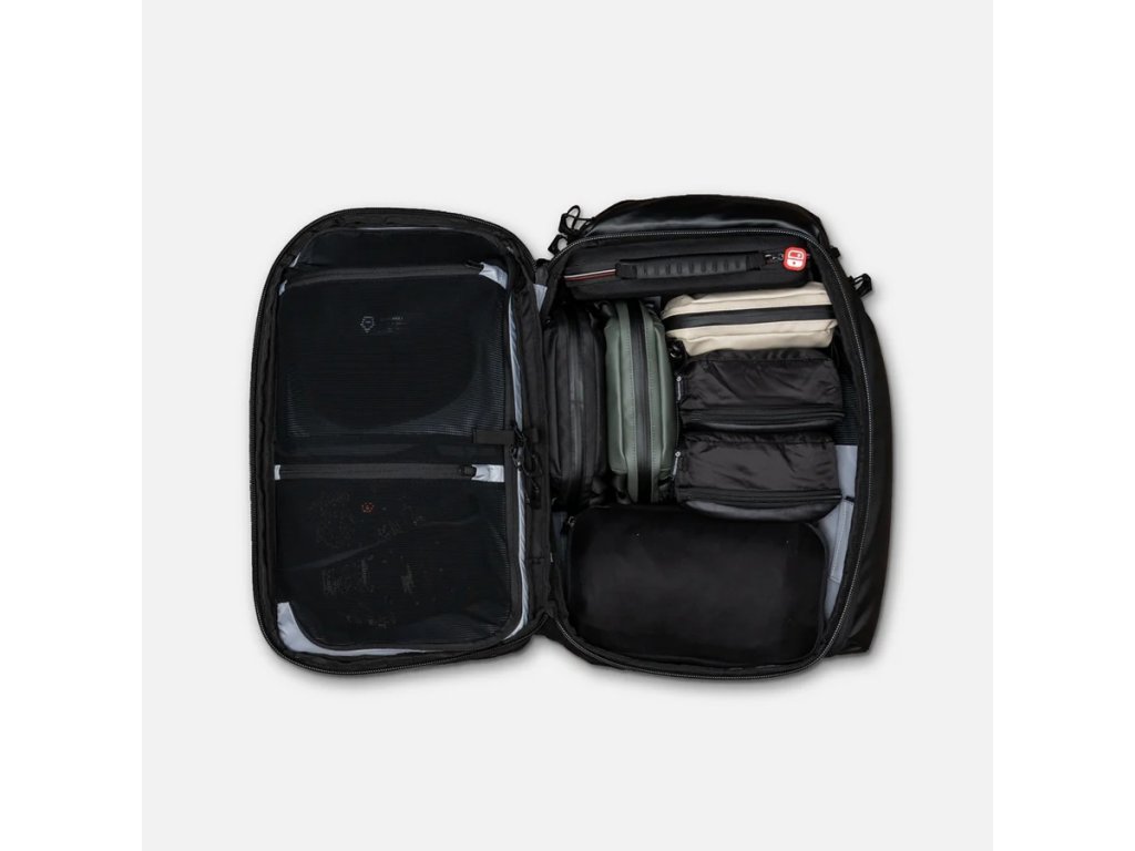 Otvorenie v štýle kufra, kompresné popruhy a polstrované priehradky na notebook a tablet dopĺňajú kamerová kocka Essential Camera Cube V1 a praktické doplnky ako vrecko na bielizeň, obuv a kompresné popruhy. Vďaka tomu ľahko oddelíte fotovýbavu od oblečenia a ostatných vecí.
