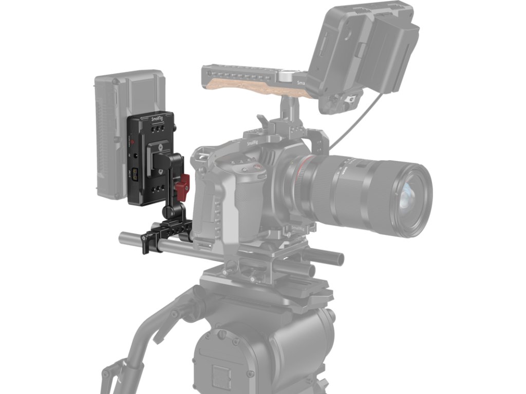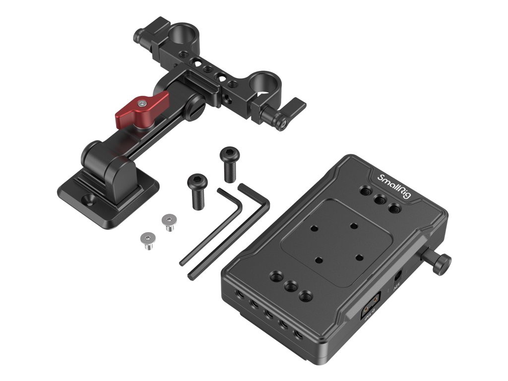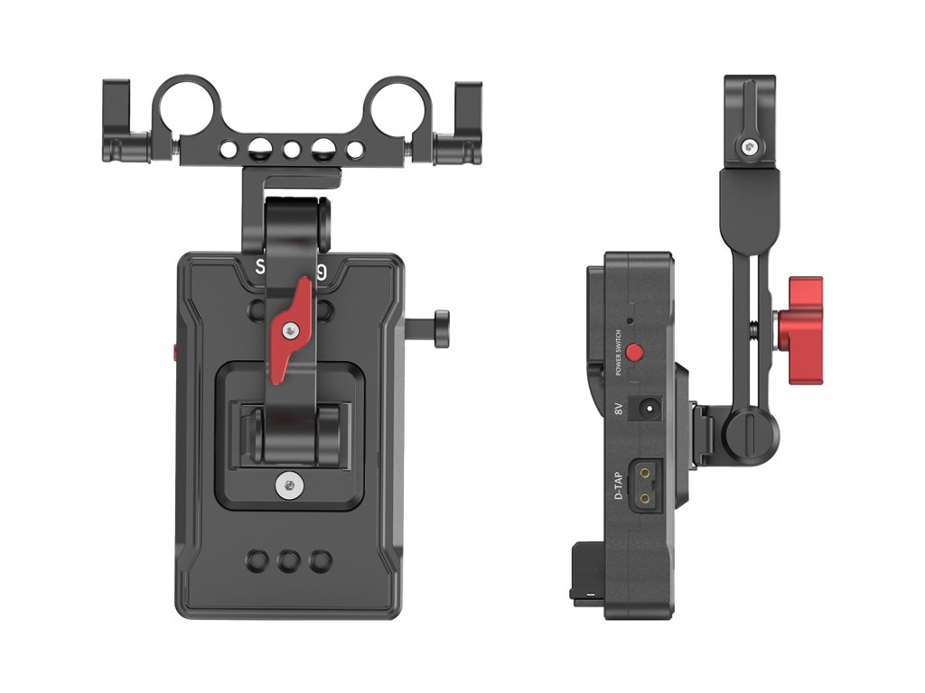 Súčasťou je 15 mm dvojitá tyčová svorka s nastaviteľným ramenom, vďaka ktorej jednoducho prispôsobíte polohu dosky podľa ťažiska zostavy. Viaceré závity 1/4"-20 umožnia uchytiť ďalšie príslušenstvo. Doska je kompatibilná s väčšinou V-Mount batérií a predstavuje stabilný napájací základ pre profesionálne filmové sety.