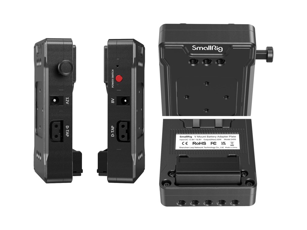 Batériová adaptérová doska V-Mount umožňuje napájať kameru aj príslušenstvo z profesionálnych V-Mount batérií. K dispozícii sú výstupy 8 V, 12 V a dva porty 14,8 V D-Tap, ktoré zvládnu napájať kameru, monitor, bezdrôtový prenos, follow-focus či ďalšie zariadenia v rigu.