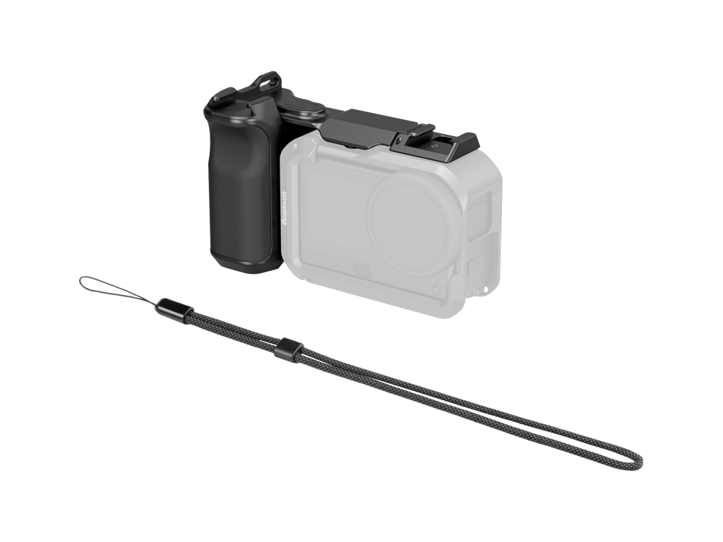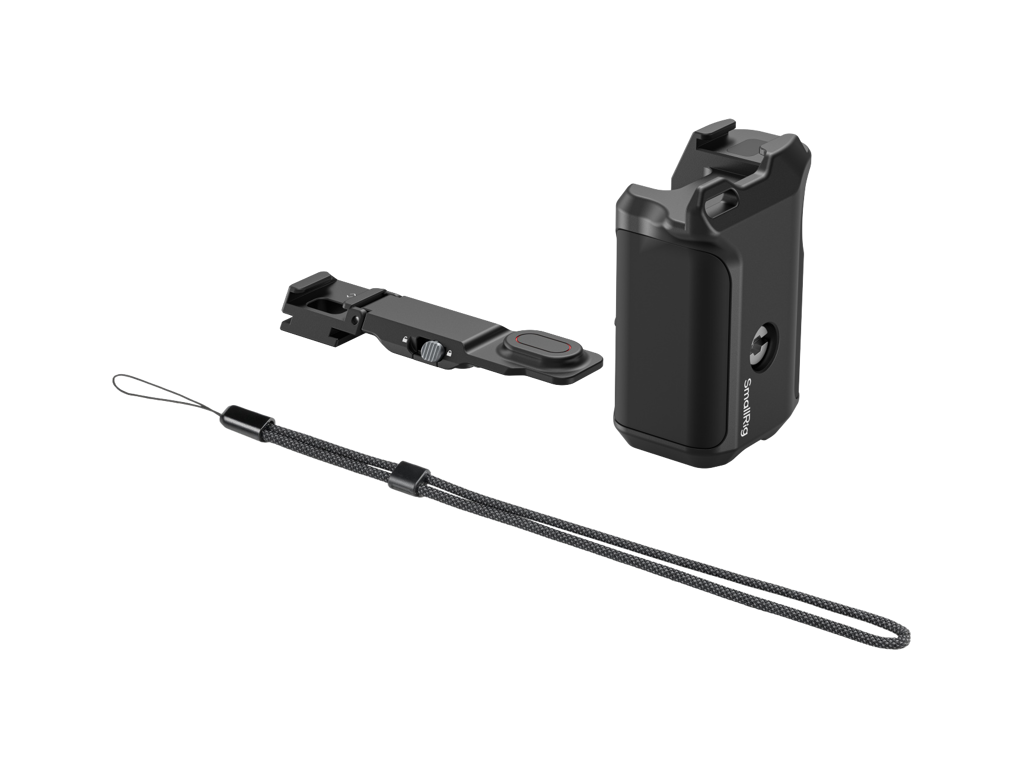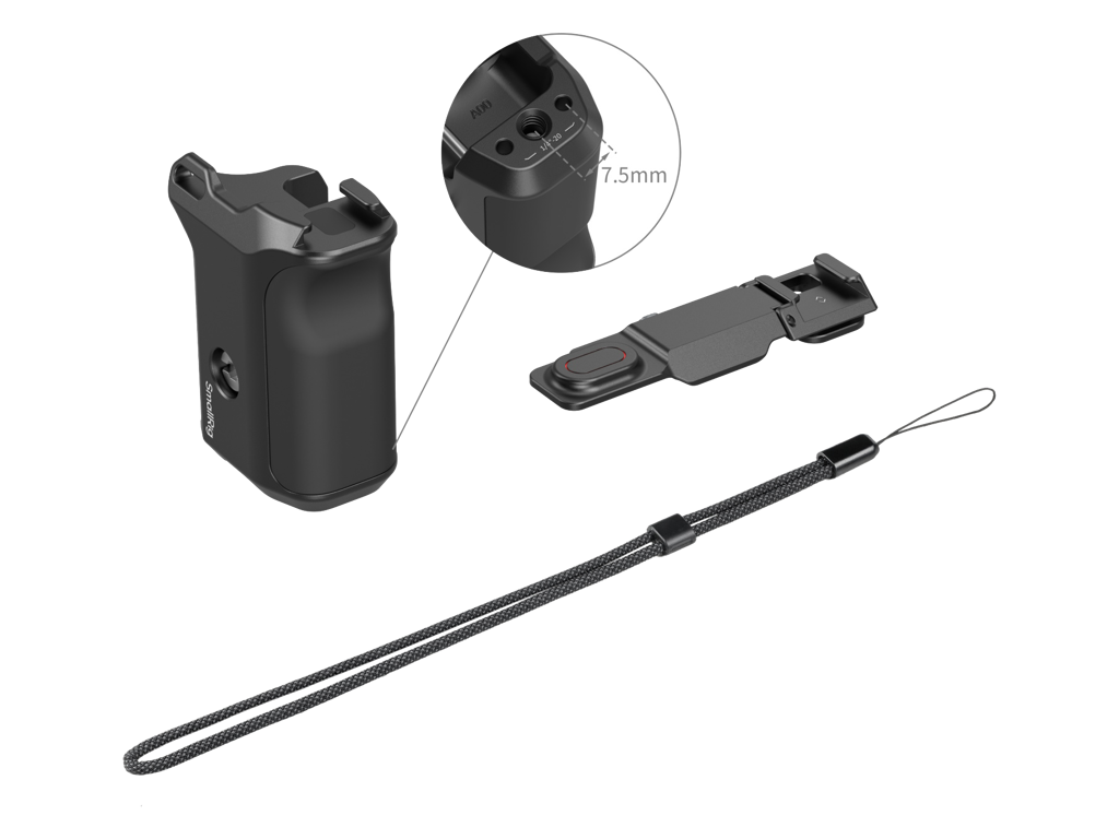 Súčasťou balenia je remienok na zápästie, ktorý poskytuje dodatočnú bezpečnosť pri fotografovaní na ulici a zabraňuje náhodnému vypadnutiu fotoaparátu. Spúšť sa ľahko pripája na rukoväť pomocou studenej pätice, čo umožňuje rýchle nastavenie a okamžitú pripravenosť na fotografovanie. Základňa rukoväte je vybavená 1/4"-20 upevňovacím otvorom proti otočeniu pre rýchlu montáž na statívy a iné podporné systémy.