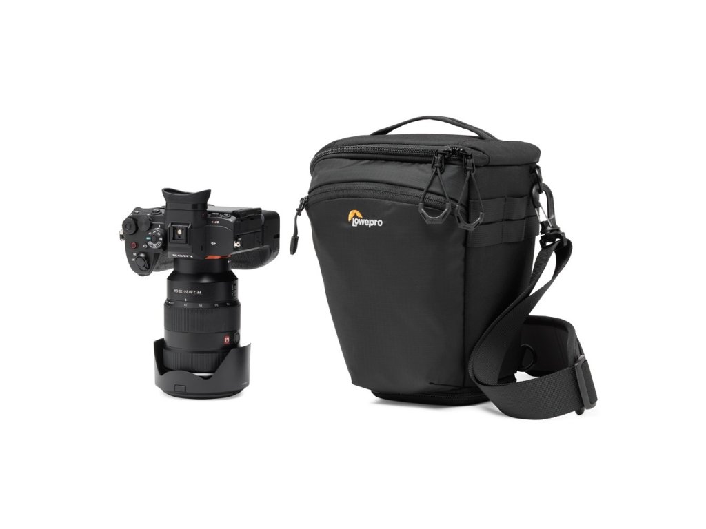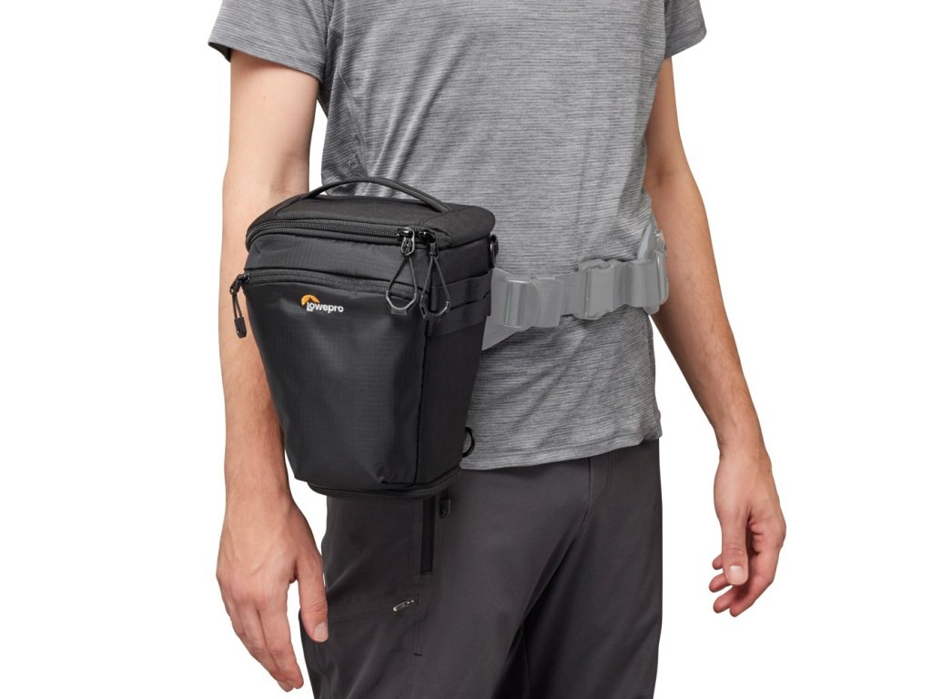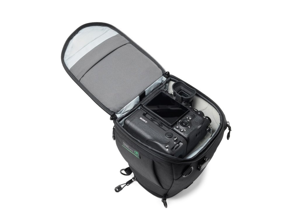 Taška je dimenzovaná pre plnoformátové telo s portrétnym gripom a objektívom 24–70 mm f/2.8. Rozširujúca sekcia umožňuje nosiť objektív so slnečnou clonou v polohe na fotenie. Bočné otváranie dvierok zlepšuje prístup k fotoaparátu s gripom.