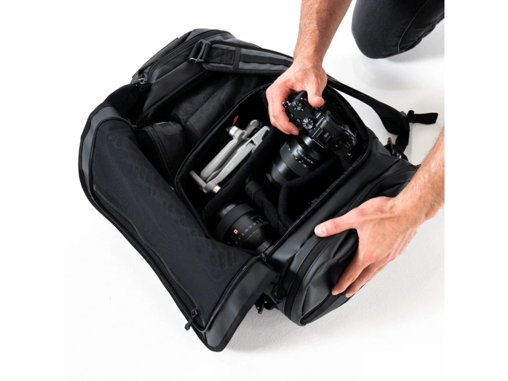CARRYALL Duffel 30L Black je ideálnou voľbou pre fotografov aj cestovateľov, ktorí hľadajú odolnú a nenápadnú tašku použiteľnú v meste aj v teréne.