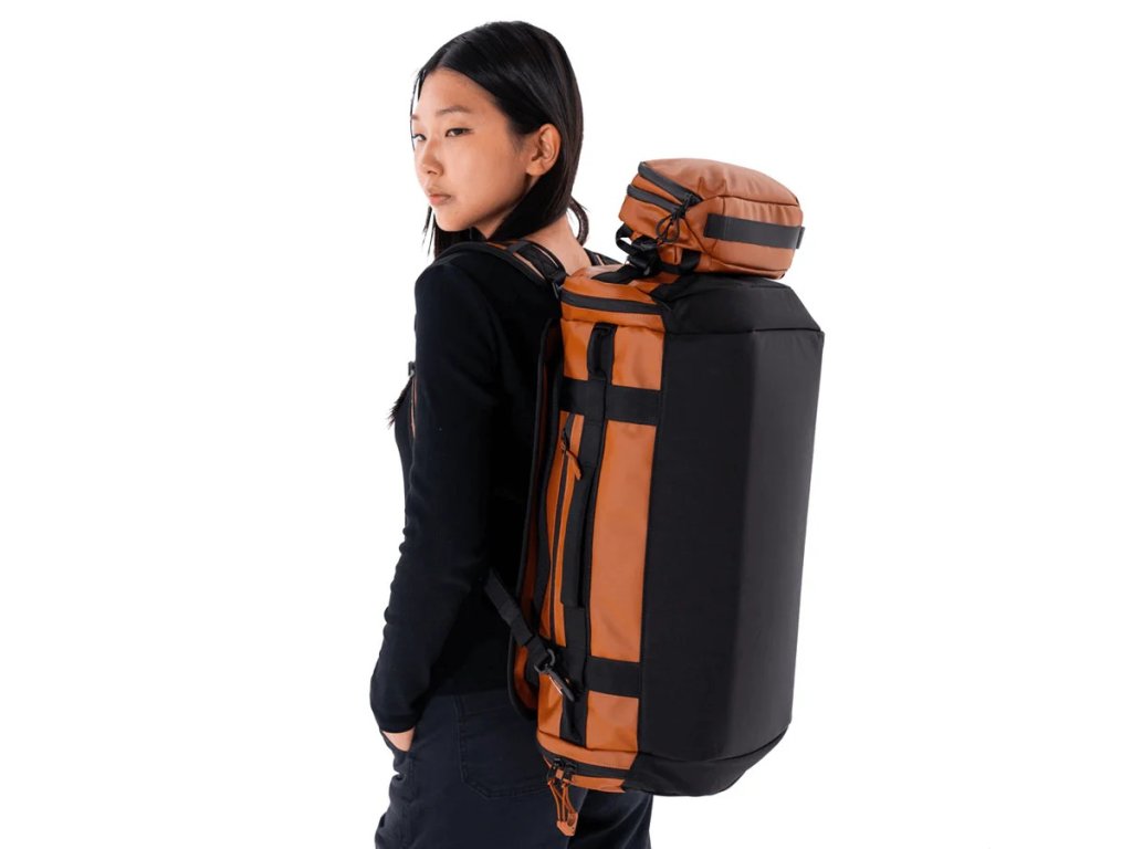 Hybridný systém nosenia umožňuje používať tašku ako klasický duffel alebo pohodlný batoh s odkladacími ramennými popruhmi. Vnútorné puzdrá a vrecká uľahčujú organizáciu obsahu, zatiaľ čo vonkajšie vrecká poskytujú rýchly prístup k nevyhnutným drobnostiam.