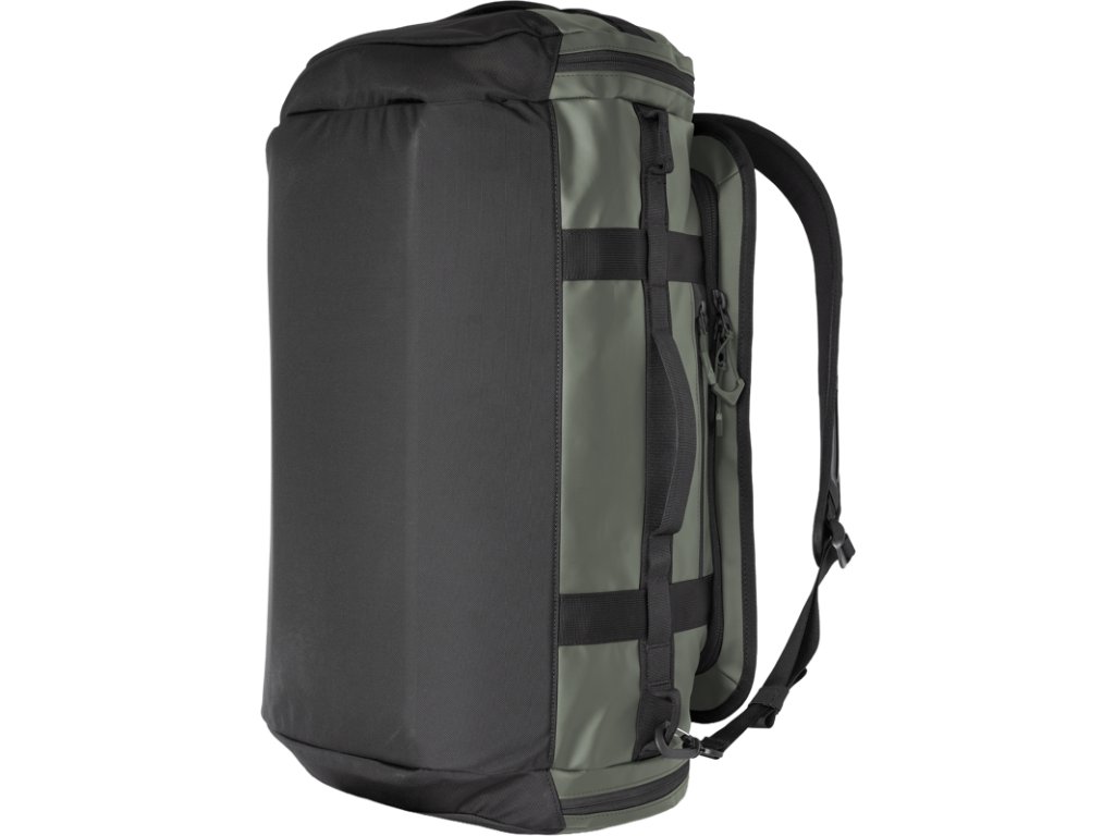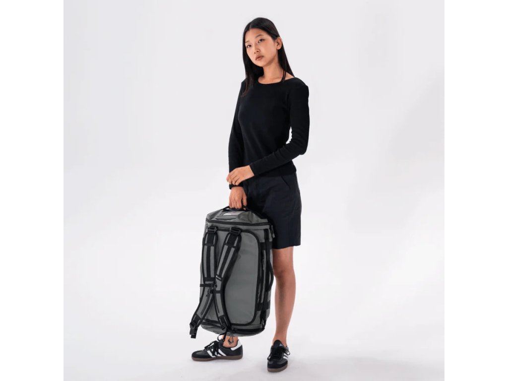 Hybridný systém nosenia umožňuje použiť tašku ako batoh alebo klasický duffel. Širokootvárateľná hlavná priehradka pojme objemné vybavenie či viacdňovú garderóbu, zatiaľ čo vnútorné vrecká a vonkajšie úchyty uľahčujú organizáciu aj manipuláciu.