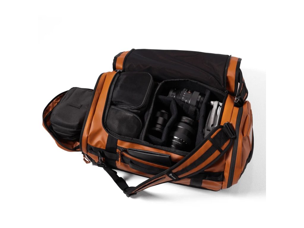 CARRYALL Duffel 60L Sedona Orange je ideálny pre fotografov, filmárov a dobrodruhov, ktorí potrebujú spoľahlivú veľkú tašku s výbornou viditeľnosťou v teréne.