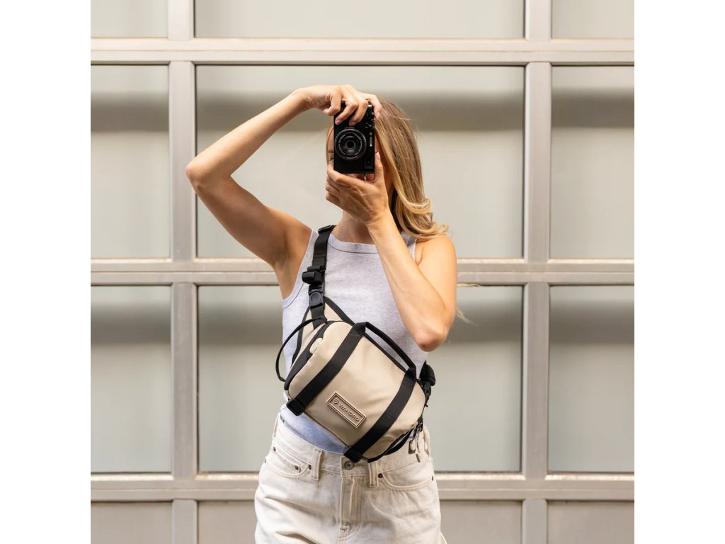 Praktická sling taška s objemom 4 litre v farbe Yuma Tan spája nadčasový vzhľad s každodennou funkčnosťou. Pojme menší fotoaparát alebo základné osobné veci a vďaka nízkej hmotnosti a pohodlnému popruhu je ideálna na celodenné nosenie.