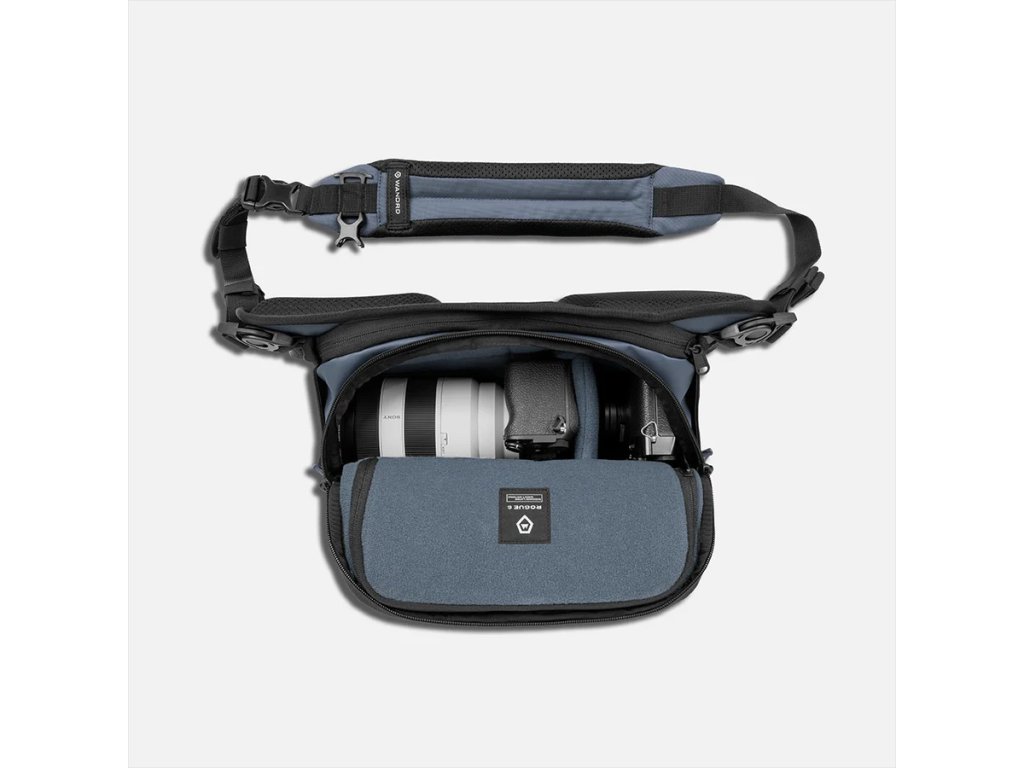 Šesťlitrová sling taška je navrhnutá pre fotografov, ktorí potrebujú viac priestoru ako pri ultra-kompaktných modeloch, no stále si chcú zachovať vysokú mobilitu. Zmestí sa do nej fotoaparát s ďalšími objektívmi a príslušenstvom v upraviteľnom vnútornom usporiadaní.
