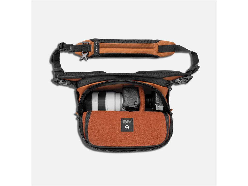 ROGUE Sling 6 l v odtieni Sedona Orange spája vysokú viditeľnosť s funkčnou kapacitou pre foto techniku. Ponúka priestor na telo fotoaparátu, ďalšie objektívy a príslušenstvo v konfigurovateľnom vnútornom usporiadaní.