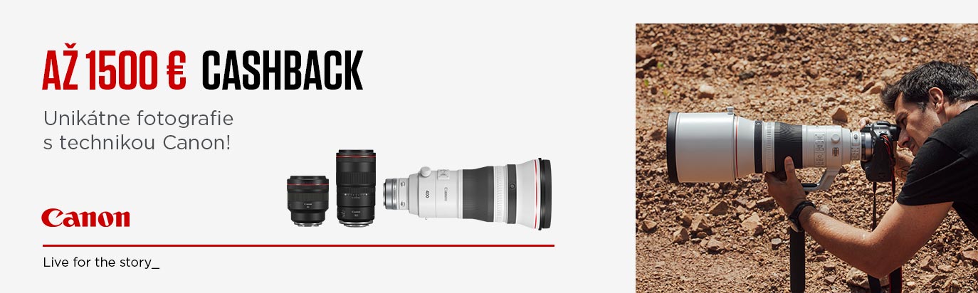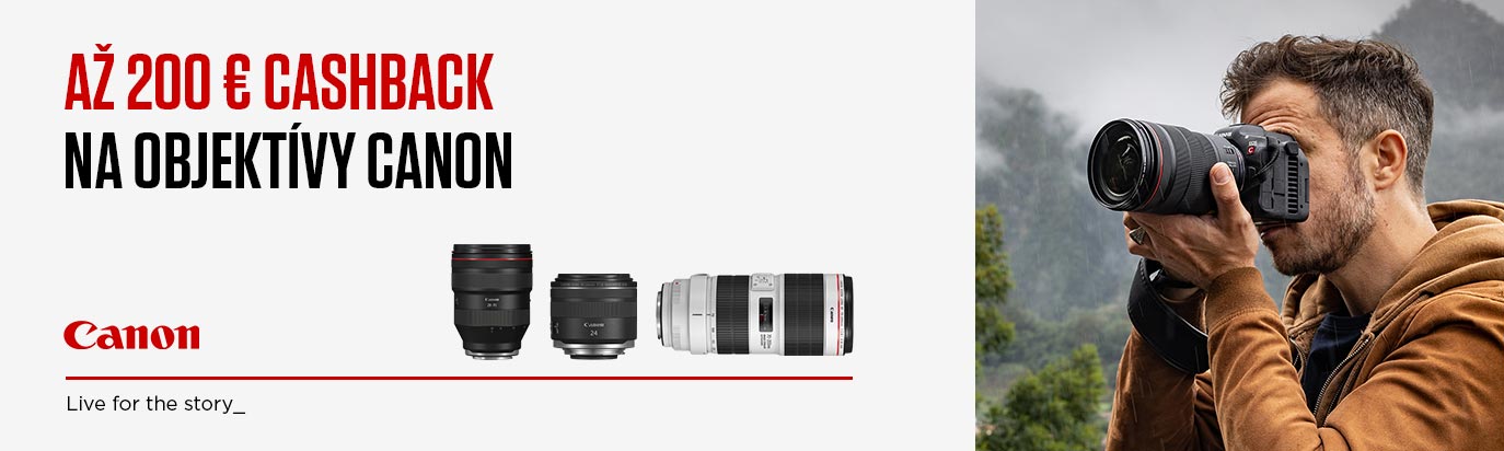 Kúp si ktorýkoľvek z vybraných fotoaparátov, doplň k nemu objektív a získaj späť až 200 €. Akcia Canon - Lens Cashback je kombinovateľná s akciou Canon - Letný cashback, vďaka čomu môžeš ušetriť hneď dvakrát! Využi Canon cashback kalkulačku a veľmi ľahko zistíš celkovú výšku tvojho spätného bonusu! Stačí kliknúť na tento link www.canon.sk/kalkulacka a zvoliť si produkty, ktoré si chceš kúpiť. Akcia platí od 1. 6. 2023 do 31. 1. 2024.