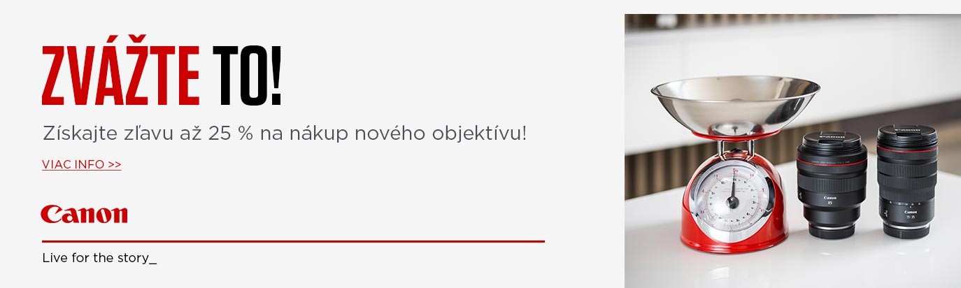 - Za nákup vybraných RF objektívov môžeš získať zľavu až 25% z bežnej ceny.