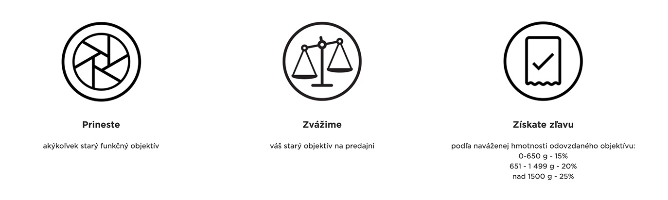 - Podmienkou pre uplatnenie nároku je odovzdanie akéhokoľvek funkčného objektívu či už fyzicky v našom showroome, alebo prostredníctvom pošty.