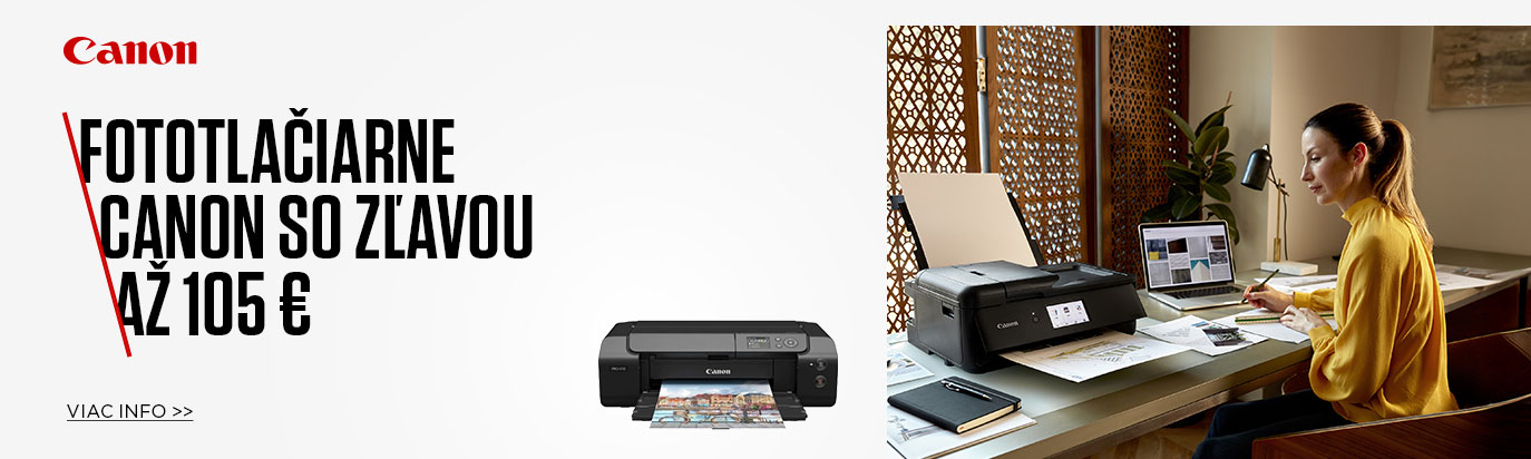 Kúp si u nás tlačiarne Canon so zľavou až 105 €. Akcia prebieha v termíne od 19. 5. do 30. 6. 2025.