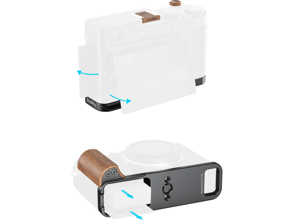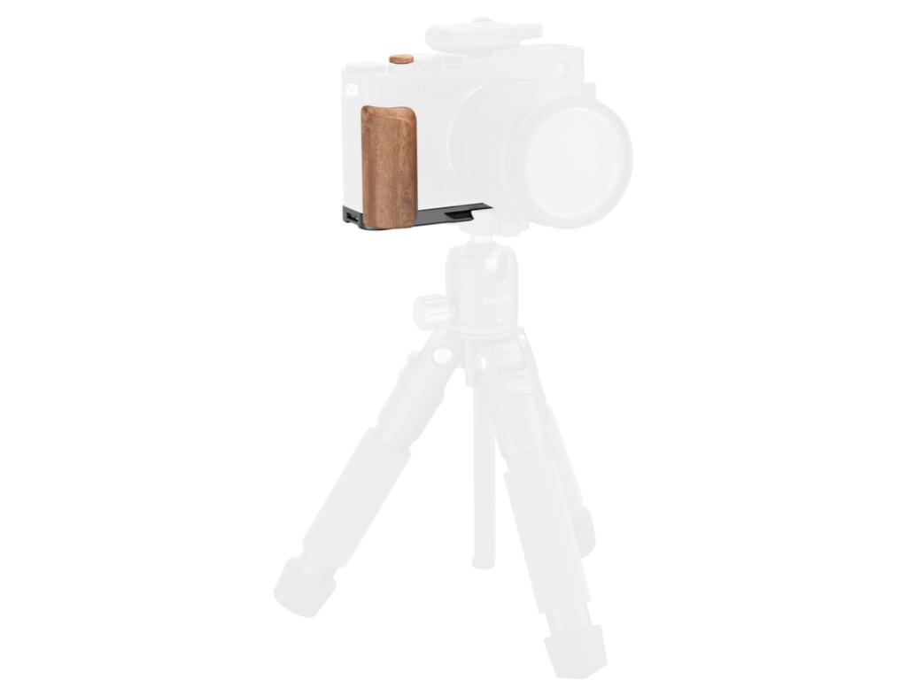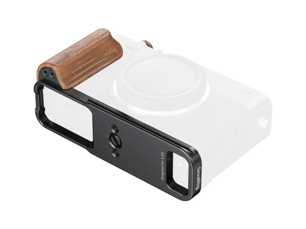 SmallRig 5985 je L-tvarová montážna doska s drevenou rukoväťou pre FUJIFILM X-E5 v čiernom vyhotovení. Upevňuje sa pomocou skrutky 1/4"-20 a vďaka silikónovým podložkám pomáha chrániť telo fotoaparátu pred poškriabaním.