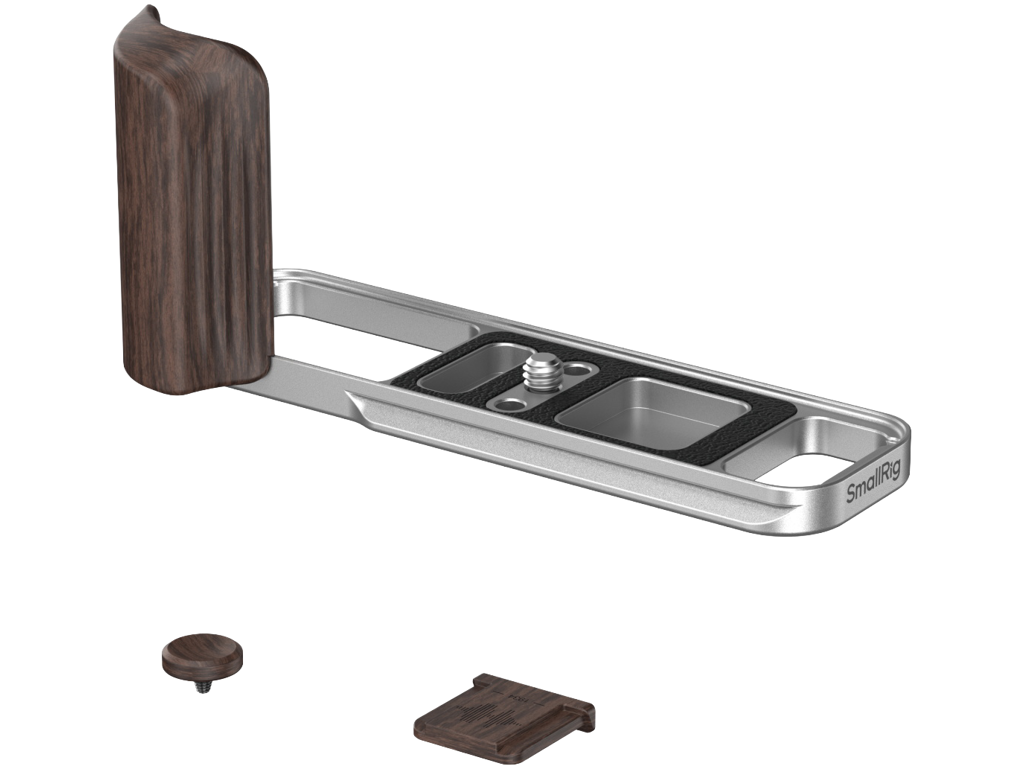 SmallRig 6236 L-tvarová montážna doska s drevenou rukoväťou pre FUJIFILM X-E5, eben, strieborná