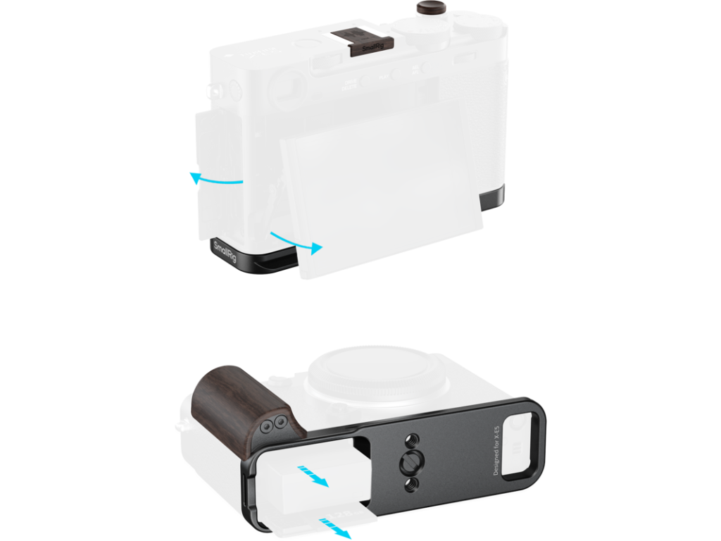 SmallRig 6237 je L-tvarová montážna doska s ergonomickou drevenou rukoväťou z masívneho ebenu pre FUJIFILM X-E5. Čierna základňa je navrhnutá tak, aby vizuálne splynula s čiernym telom fotoaparátu a zároveň ponúkla praktickú Arca-Swiss kompatibilitu pre rýchlu montáž na statív.