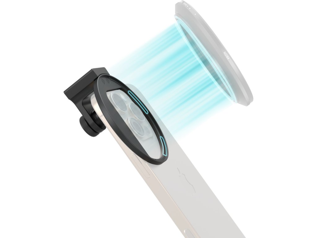 Univerzálny magnetický adaptér umožňuje pripevniť 67 mm filtre na širokú škálu smartfónov. Uchytenie prebieha pomocou nastaviteľnej svorky, ktorá bezpečne obopne telefón (6–15,8 mm) bez nutnosti puzdra a otvor adaptéra je navrhnutý tak, aby nezasahoval do funkcie viacerých objektívov mobilného fotoaparátu.