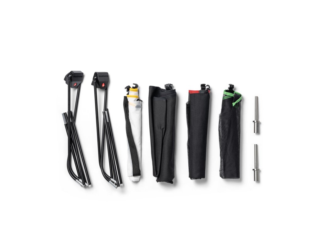 Manfrotto Rapid Flags sú novou generáciou týchto potrebných kreatívnych nástrojov, ponúkajúcich všetky rovnaké funkcie ako ich predchodcovia s pevnými oceľovými rámami, ale sú navrhnuté tak, aby boli prenosnejšie než kedykoľvek predtým vďaka technológii skladacích rámov RapidExoframe™.