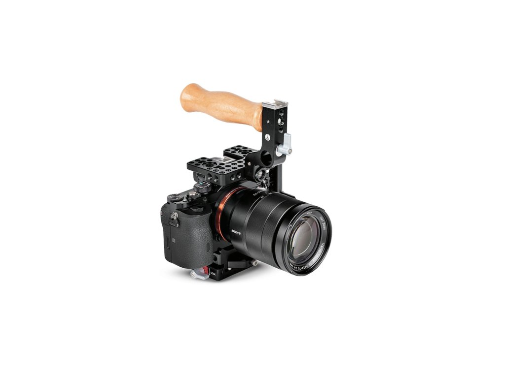 "Klec obsahuje vratnou horní rukojeť, která může být přemístěna přes oblast objektivu při použití adaptéru XLR. Rukojeť se může při sklopení tašky také sklopit dolů a lze ji dokonce znovu konfigurovat na levou, vertikální 15mm tyč pro sekundární uchopení. Do rukojeti je zabudován držák studené boty a 15mm trubková svorka pro upevnění sady dřevěných kamer UVF Mount používaných s elektronickými hledáčky třetích stran. Kamery s rozkládacími LCD obrazovkami lze snadno umístit a přiložena kabelová svorka HDMI lze připevnit na svislou tyč, aby se zajistily videokabely a zabránilo se poškození portu. Je-li požadována lehká opěrka o průměru 15 mm, klec může být kombinována s 15 mm základovou deskou pro zajištění průchodu tyče (prodává se samostatně, např. Manfrotto MVA520W-1). Kompatibilita fotoaparátu s Cage Small: Zrcadlové a digitální zrcadlovky do výšky 100 mm SONY: A7, A7II, A7R, A7RIII, A7S, A7RII, A7SII, A9, A6300, A6500, A6000 PANASONIC: GH2, GH3, GH4, GH5 CANON: EOS 550D / Rebel T2i / Kiss X4 EOS 600D / Rebel T3i / Kiss X5 EOS 650D / Rebel T4i / Kiss X6 i EOS 700D / Rebel T5i / Kiss X7 i EOS 750D / Rebel T6i / Kiss X8i EOS 760D / Rebel T6s / 8000D EOS 800D / Rebel T7i / Kiss X9i 60D, 550D EOS R NIKON: D7000, D7100, D7200, D5100, D5200, D5300, D5500, D90, D3100, D3200, D3300, D3400, Z6, Z7 OLYMPUS: OM-D EM-1MKII Fujifilm: X-T3 "Dodatočné parametre