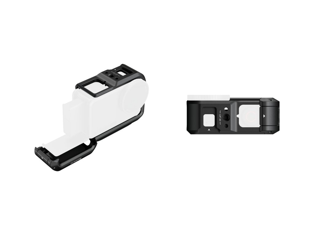 Bočné magnetické rýchloupínacie úchyty sú kompatibilné s pôvodným dvojsmerným rýchloupínacím adaptérom DJI aj s držiakmi SmallRig (5890, 5779, 5991) a umožňujú ľahké prepínanie medzi horizontálnou a vertikálnou orientáciou. Priestor na batériu zostáva prístupný z boku, takže ju možno meniť bez demontáže klietky. Otvor na remienok umožňuje pripevniť dodaný zápästný popruh pre bezpečnejšie snímanie z ruky, zatiaľ čo silikónový kryt chráni objektív pri prenášaní. Odnímateľný rýchloupínací držiak možno jednoducho odstrániť pomocou imbusového kľúča a zachovať plnú funkčnosť magnetického uchytenia kamery.