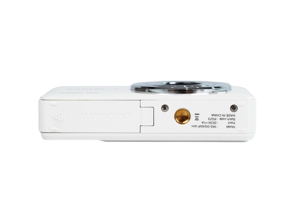 Kompaktný digitálny fotoaparát v bielom prevedení je navrhnutý pre jednoduché a intuitívne fotografovanie. Vďaka malým rozmerom sa ľahko prenáša a je tak ideálny na každodenné použitie, výlety alebo rodinné akcie.