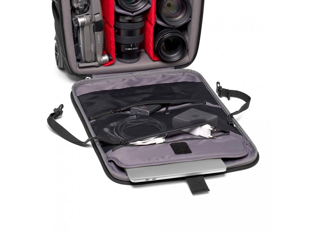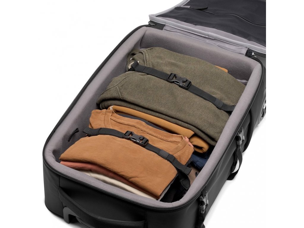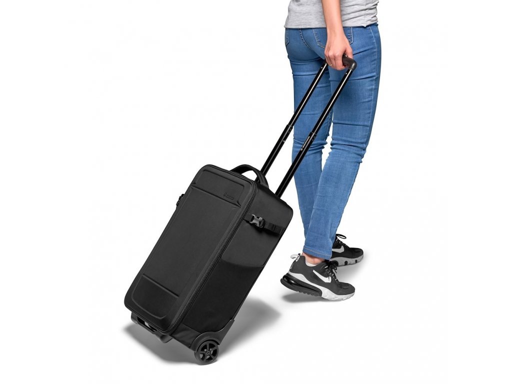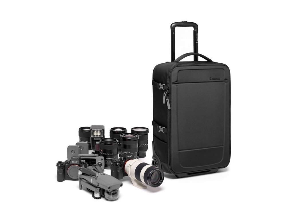 Táto taška na kolieskach s dvomi kolieskami spĺňa medzinárodné obmedzenia veľkosti príručnej batožiny* a pojme bezzrkadlovku so 70-200 mm f/4, druhé telo fotoaparátu a až 5-6 objektívov. Hlavný plný predný otvor je vybavený odolnými 10 mm zipsami YKK®, zatiaľ čo polstrovaný priestor na fotoaparát je vybavený úplne novým ochranným systémom Manfrotto M-Guard™. Tieto špeciálne prepážky vyrobené zo špeciálnej peny EVA s vysokou hustotou poskytujú výnimočnú odozvu na tlmenie nárazov pri mimoriadne tenkom profile. Prispôsobiteľné vzory skladania umožňujú maximálnu všestrannosť na úplnú ochranu vybavenia fotoaparátu pri maximálnom využití priestoru.