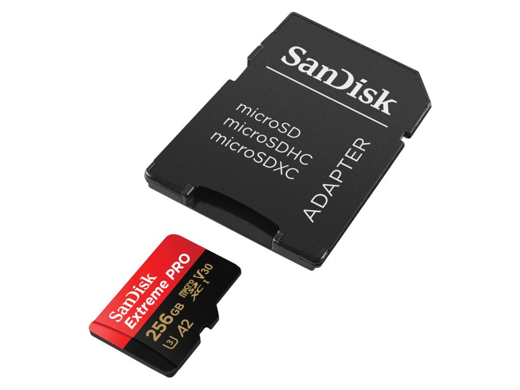SanDisk Extreme PRO microSDXC 256 GB + SD Adapter 200 MB/s C10 V30 UHS-I U3