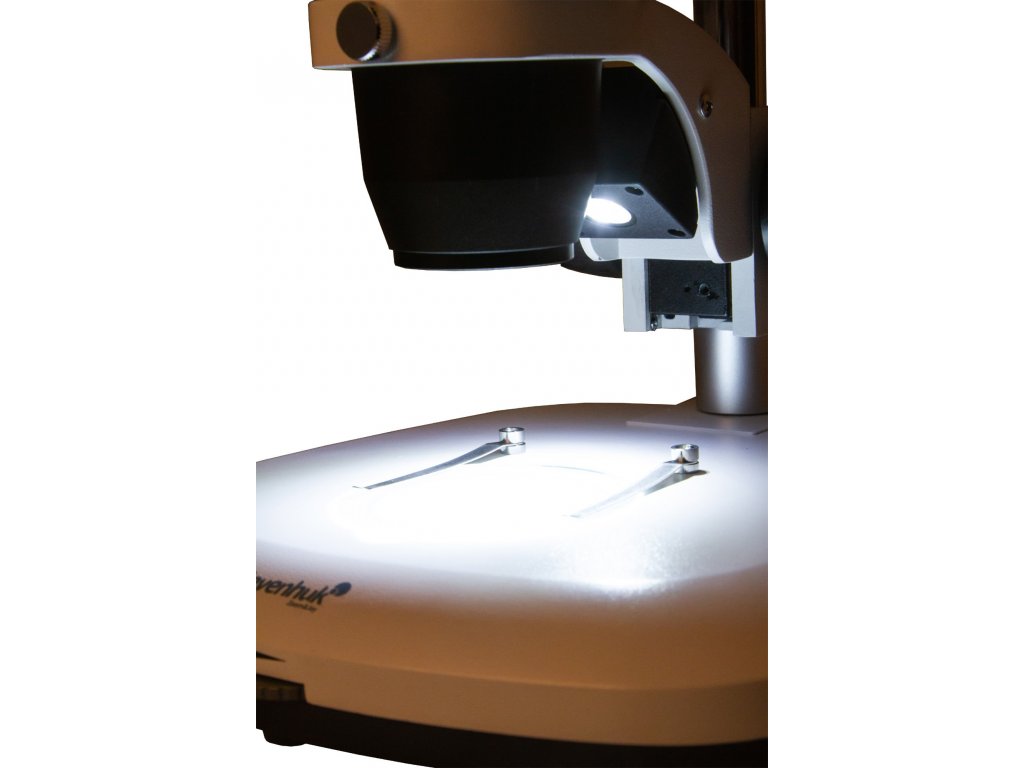 Osvetľovací systém obsahuje horné a spodné LED diódy s nastaviteľným jasom. Svetlo je napájané zo sieťového napájacieho zdroja. Telo mikroskopu je vyrobené z odolného kovu, čo je dôvod, prečo je mikroskop Levenhuk ZOOM 1T spoľahlivým optickým prístrojom s dlhou životnosťou.