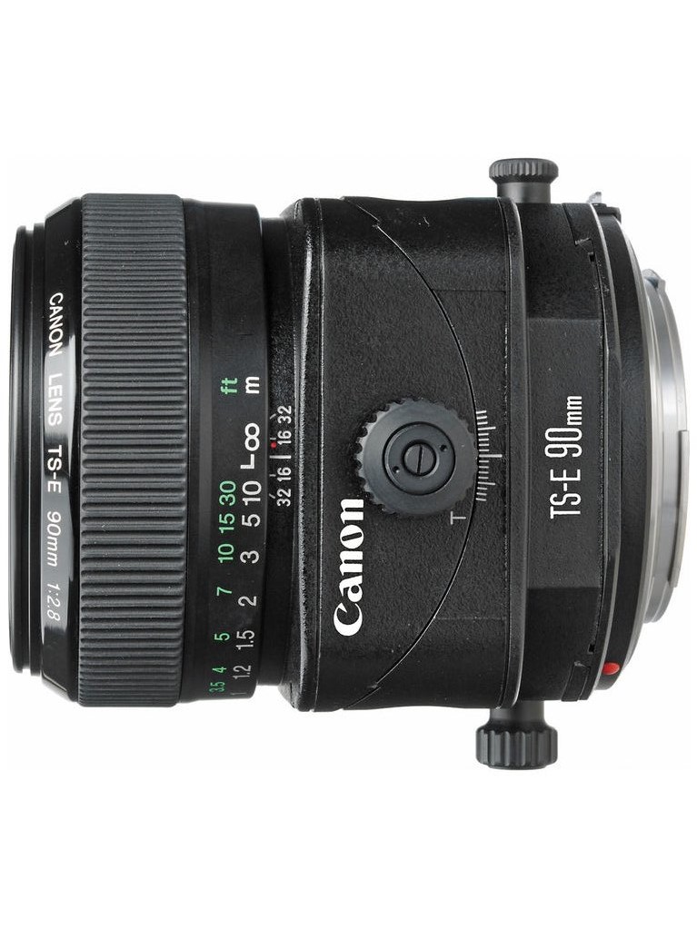 Objektív TS-E 90m f/2.8 umožňuje kontrolovať hĺbku ostrosti a perspektívu vďaka ±8° nakloneniu, ±11 mm posunu a ±90° otočeniu. Mechanizmus naklonenia a posunu má tiež možnosť uzamknutia, aby nedochádzalo k neželaným pohybom.