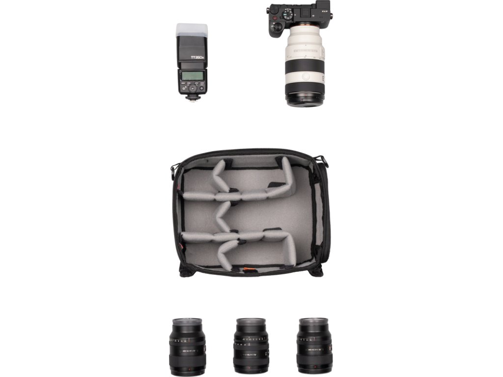 Modulárna kocka pre fotoaparát poskytuje bezpečnú a flexibilnú organizáciu techniky vo vnútri batohov alebo cestovnej batožiny. Vďaka polstrovaným stenám a mäkkej podšívke udrží vašu výbavu chránenú pred otrasmi aj poškriabaním.