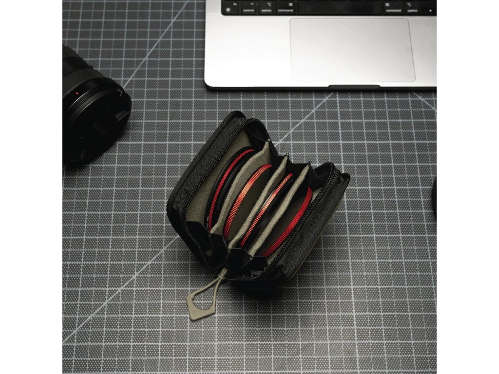 Odolné telo zo zosilnenej peny EVA znižuje riziko poškodenia pri pádoch a nárazoch, zatiaľ čo mäkko polstrované vnútro chráni sklá pred škrabancami. Štyri samostatné priehradky pojmú filtre do priemeru 82 mm. Vďaka vonkajšiemu pútku puzdro ľahko pripevníte na batoh alebo popruh a kvalitný RC YKK zips s U-pullerom WANDRD umožní pohodlný jednoručný prístup.