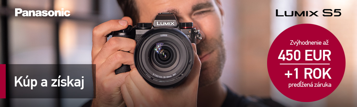 Kúp si u nás niektorý z vybraných fullframe fotoaparátov Panasonic v období od 1. 10. do 31. 12. 2021 a získaj zľavu 300 €! Stačí keď v nákupnom košíku zadáš kód PANA2021. Ďalších 150 € ti vrátime, ak si spolu s telom, alebo kitom kúpiš objektív. A k tomu všetkému dostaneš aj predĺženú záruku +1 rok, ak si spravíš registráciu na www.lumixpro.panasonic.com/cz/