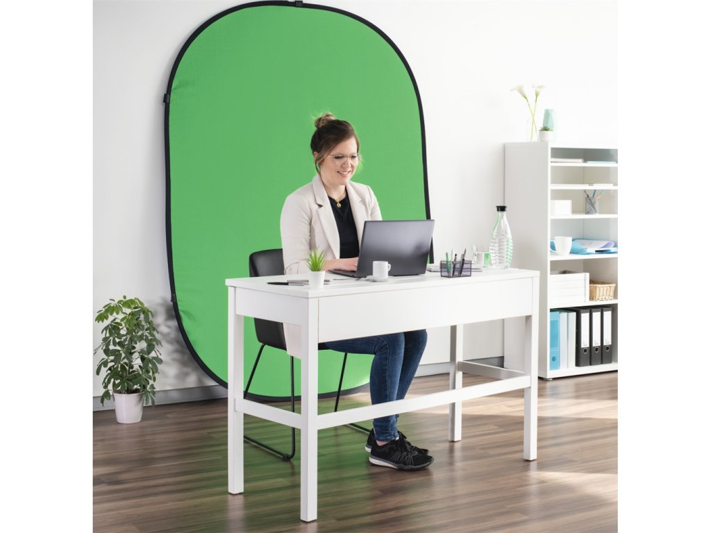 - Dvojstranné pozadie: zelená / modrá (chroma key)
