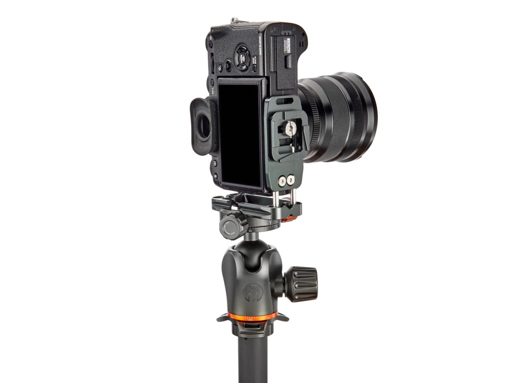 Dĺžku držiaka možno nastaviť až do 113 mm pomocou 2 tuhých posuvných tyčí a skrutiek z nerezovej ocele, ktoré si užívateľ pomocou dodaného nástroja zafixuje na svojom mieste. Zadná hrana základne je skosená pre lepší prístup k výklopnému displej fotoaparátu. Zvislá súčasť je obrobená tak, aby neblokovala porty fotoaparátu, a navyše môže byť namontovaná naopak, aby bolo možné pripojiť káble z pravej alebo ľavej strany. Bočnú dosku navyše veľmi ľahko pripevníte hore nohami, čím pretvoríte L-Bracket na kolískový držiak pre vašu kameru.