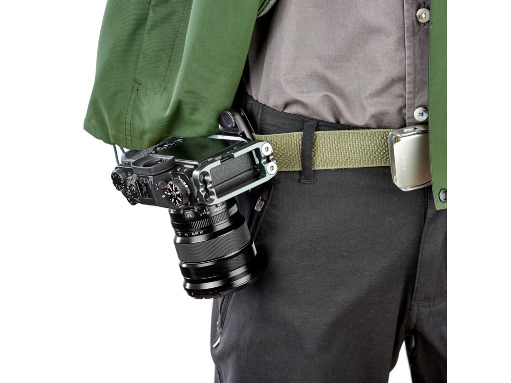 Univerzálne 1/4"-20 skrutkové úchyty na zvislej strane poslúžia pre pridanie ďalšieho príslušenstva, ako sú napríklad monitory, mikrofóny či iné prístroje. Otváranie vo zvislom smere možno nastaviť do jednej zo 4 pozícií pre lepšie pripojenie kábla a príslušenstva. Pútko umiestnené na boku držiaka je určené pre pripevnenie popruhu na ruku alebo na rameno, čo vám maximálne uľahčí prepravu či práci v teréne. S týmto držiakom tak neprídete o žiadne funkcie či iné kľúčové vlastnosti vášho fotoaparátu, takže sa môžete plne sústrediť na svoj výkon pri snímaní v rôznorodých prostrediach.
