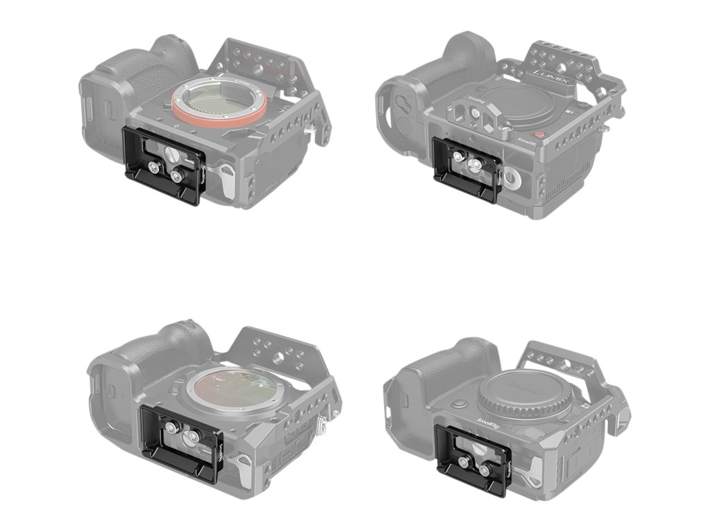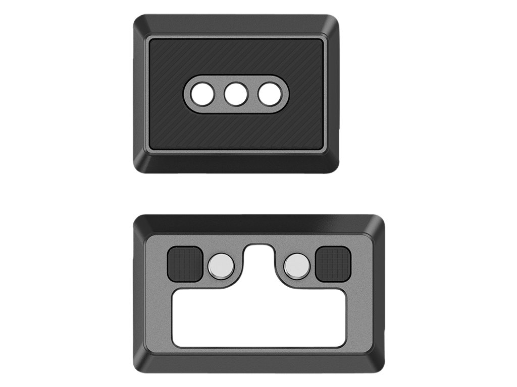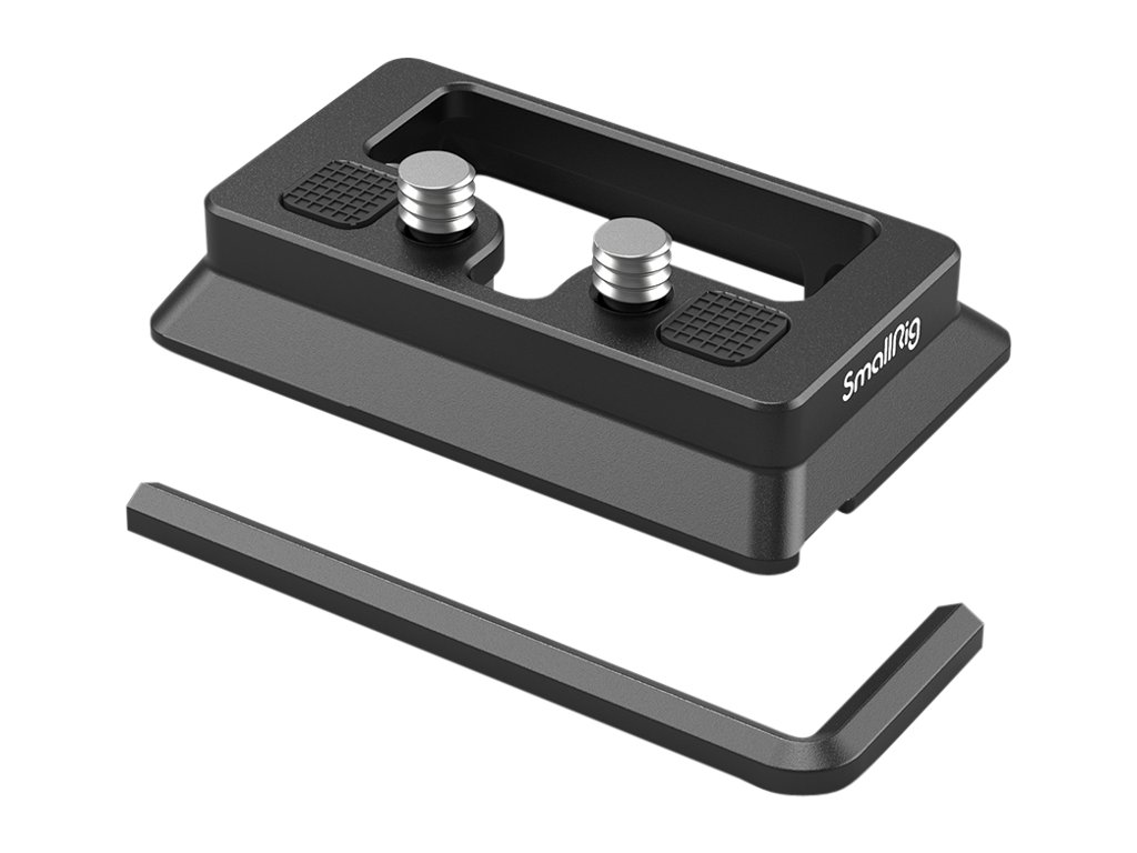 Dvojica zaisťovacích skrutiek 1/4"-20 so vzájomnou vzdialenosťou 18 mm zaručuje pevné spojenie s väčšinou klietok SmallRig a otvorený stredový dizajn umožňuje pohodlný prístup k skrutkám pri demontáži fotoaparátu. Gumové podložky na hornej strane chránia základňu fotoaparátu alebo klietky pred poškrabaním a posunom.