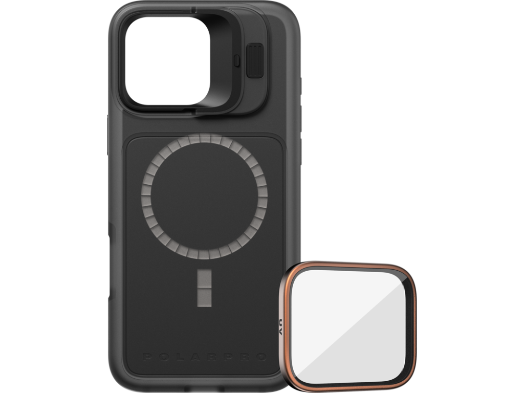 Súprava LiteChaser 16 Base Case pre iPhone 16 Pro Max s UV filtrom je ideálnym riešením pre kreatívcov, ktorí chcú chrániť optiku svojho telefónu a zároveň mať možnosť jednoducho pridávať ďalšie kreatívne filtre a objektívy. UV filter chráni sústavu fotoaparátov pred prachom, škrabancami a nečistotami podobne ako ochranná doska, ale stále umožňuje fotografovať priamo cez sklo.