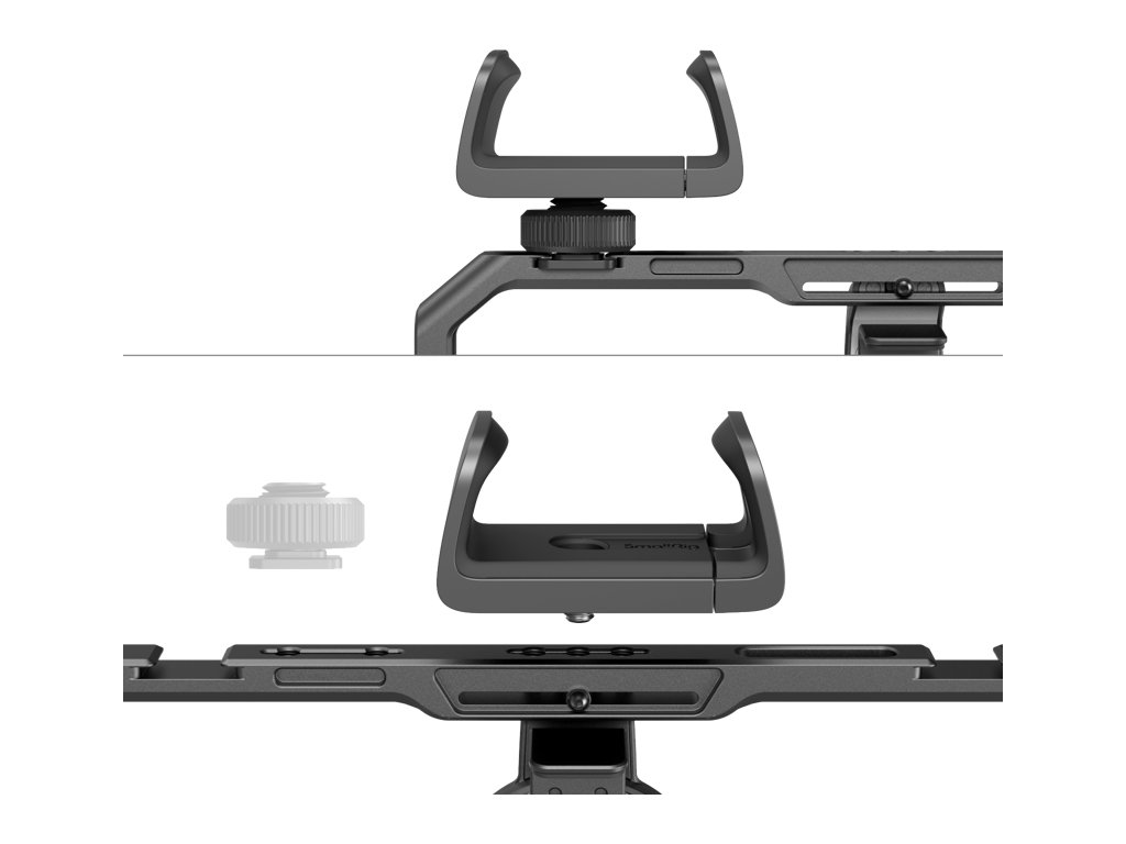 - Univerzálna klietka pre smartfón – vybavená viacerými otvormi so závitom 1/4"-20 a úchytmi cold shoe na pripevnenie mikrofónu, svetla a ďalšieho profesionálneho príslušenstva.