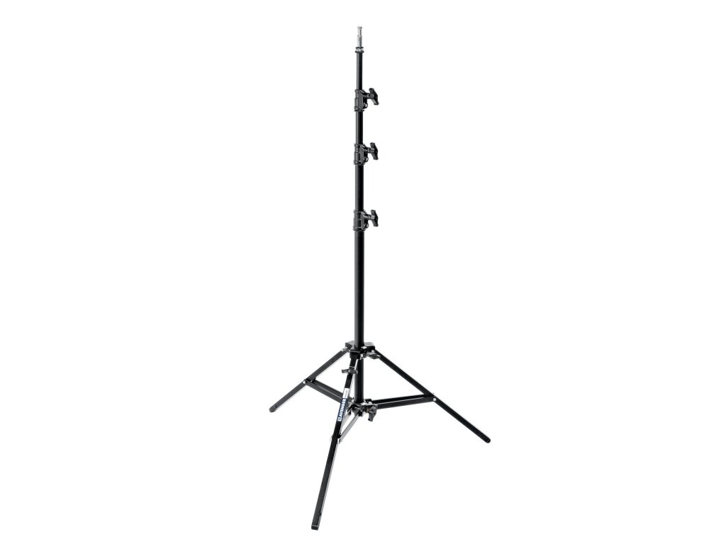 This is a black aluminium stand with 4 sections and 3 risers. The stand can hold a maximum payload of 10kg and can reach a maximum height of 3m. The stand features 1 levelling leg for easy use on uneven surfaces. It also features a 5/8'' (16mm) top attachment.Dodatočné parametre
