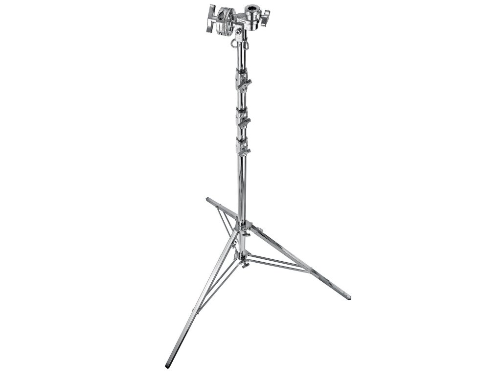 These overhead stands have been designed with a built-in grip head for supporting poles, tubes and overhead frames. This chrome steel stand has 5 sections and 4 risers. It features 2 levelling legs for use on uneven terrain. This stand can support a maximum payload of 30kg and can reach a maximum height of 6.38m.Dodatočné parametre