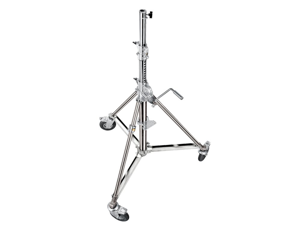 Heavy lifting stand with strengthened stainless steel column and legs, chrome steel risers and a geared column. It features 3 sections and 2 risers. This stand has 1 levelling leg and braked foam fill wheels (code 474) for smooth movements on rough ground conditions. With a maximum payload of 80kg, it can also raise up to 2.90m.Dodatočné parametre