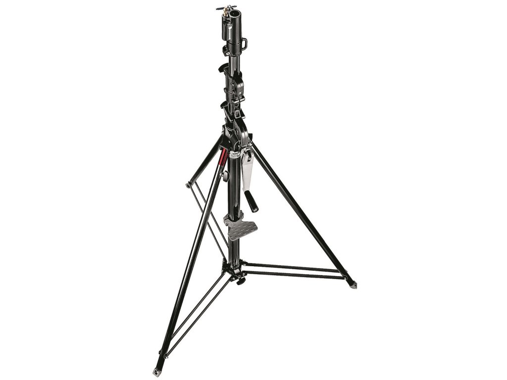 The essential, versatile Black Steel Wind Up Stand . This expertly designed stand combines all the must-have features you'd expect from a heavy-duty stand. Blending strength, portability and stability, it’s an essential item for serious photographers looking to get perfect shots even in trickier environments. This heavy-duty stand is made to last, even when used on rugged terrain, and with heavy loads. The chrome plated steel adds strength as well as looking sleek, and it comes in 3 sections, with 2 risers. This enables you to raise and lower the stand in moments, without any fiddling. In fact, you can extend up as high as 370 cm, giving you scope to capture almost any shot. The top features handy, universal mounts for total compatibility too, helping you to easily mix and match with whatever gear you need. It has a 16mm female socket and a 16mm male stud included, and it can support up to and impressive 30 kg. The levelling leg keeps everything nice and steady, even on rougher ground, and you can pair with wheels if you need to glide across the floor effortlessly.Parametre
