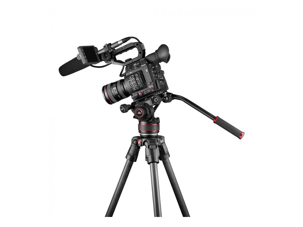Video systém zahrnuje video hlavu Manfrotto NITROTECH 608 Fluid Video Head a 635 Fast Single Tripod vyrobeny z uhlíkových vláken. Fluidní video hlava NITROTECH 608 je vybavena nejmodernější technologií založenou na pístovém mechanismu dusíku, který disponuje systémem protizávaží umožňující přesné ovládání kamery a příslušenství s váhou až do 8 kg. Variabilní funkce fluidity otáčení a naklápění umožňuje plynulý pohyb bez chvění. Je také vybaven konektorem 3/8 ”Easy Link s anti-rotační funkcí, umožní tak připojení externího monitoru nebo jiného příslušenství. Mechanismus bočního blokování posuvné desky se postará o bezpečné, rychlé a snadné připevnění kamery. Hlava NITROTECH 608 má plochý držák základny se standardním závitem 3/8 ”, který je vysoce univerzální pro různé kombinace podpor (tripod, slider a další). 635 Fast Single Tripod byla vyvinut s primárním cílem usnadnit a urychlit natáčení videa. Synchronizované uzavírací mechanismy mezi horním a dolním zámkem umožňují videokamerám ovládat celou nohu jediným zámkem. Díky tomu zvládnete svou práci v rekordním čase. Stativ poskytuje maximální univerzálnost, podporuje použití širokého výběru hlav a postará se o maximální tuhost. Přesto všechno je extrémně lehký. Navíc je plně kompatibilní s teleskopickými ground a middle spreader 2 v 1 (prodávají se jako samostatné příslušenství), které jsou navíc vybaveny mechanismem výběru 3 úhlů pro snadné nastavení. Tripod je vybaven špičatými nožičkami s gumovými převisy pro pevné uchopení a přizpůsobivost každému terénu.Parametre